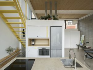 Phần mái nhà thiết kế sáng tạo, giúp cho việc điều hòa không khí trở nên dễ dàng. Công trình giải quyết được bài toán